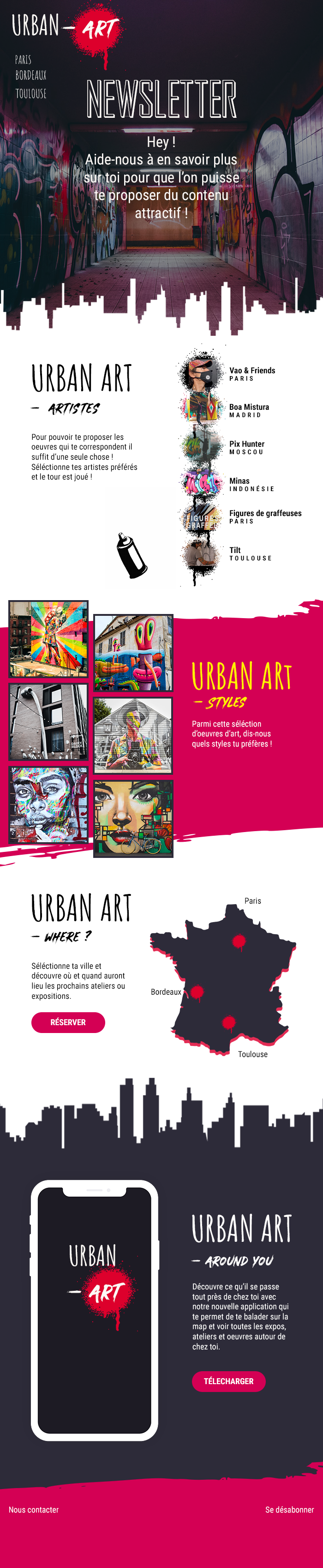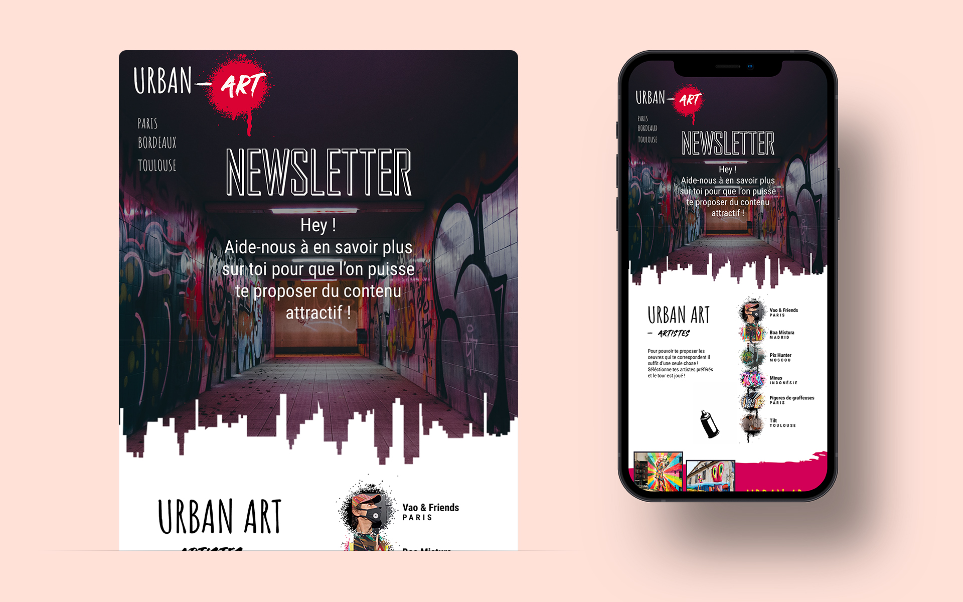 Ma mission : réaliser une Newsletter afin de communiquer avec les inscrits, proposer des contenus pertinents, pousser à l’interaction & la fidélisation, ouvrir vers de nouveaux usages et être lisible sur desktop et mobile.